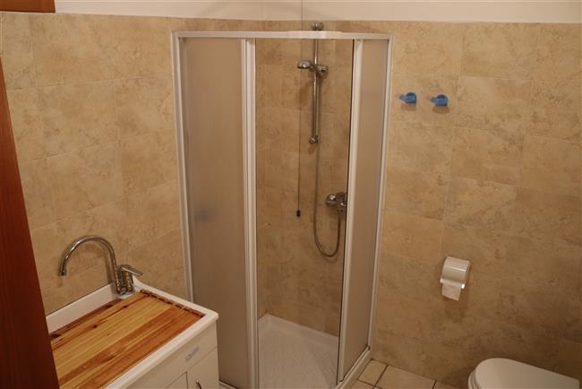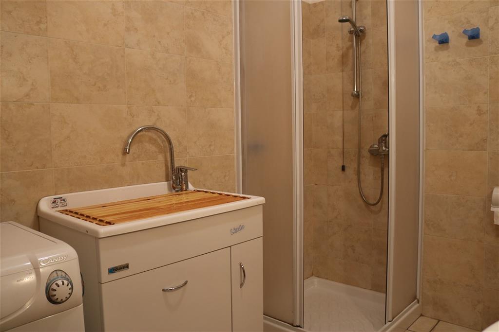 Badezimmer mit Dusche und Waschmaschine