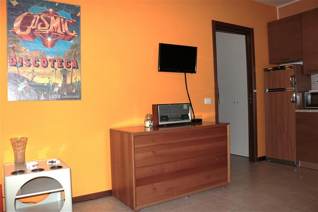 Schöne Zwei-Zimmer-Wohnung im ersten Stock einer Residenz mit Schwimmbad, nur wenige Schritte vom Zentrum von Lazise und dem öffentlichen Strand entfernt. Neue Möblierung und Parkplatz an der Anlage. Wohnzimmer mit bequemem Schlafsofa, TV und Zugang zum möblierten Balkon mit Blick auf den Pool (Westseite), Kochnische, Schlafzimmer mit Doppelbett und kleinem Ostbalkon, großer Kleiderschrank, Bad mit Dusche und Waschmaschine. Außerdem gibt es eine Klimaanlage, Geschirrspülmaschine und kostenloses W-LAN. Geeignet für maximal 3 Personen.