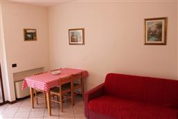 Two rooms-apartment for 2/4 persons on the first floor, with living, kitchen corner with big fridge, sofabed, furnished balcony to the east with view of the swimming pool, bedroom with double bed and a small balcony to the North, bathroom with shower. Traditional furniture, washing machine, satellite TV, private parking space. Small pets are welcome.